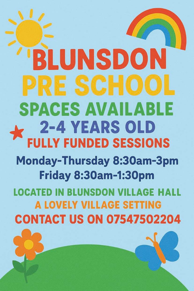 🌈 Spaces Available at Blunsdon Pre School! 🦋